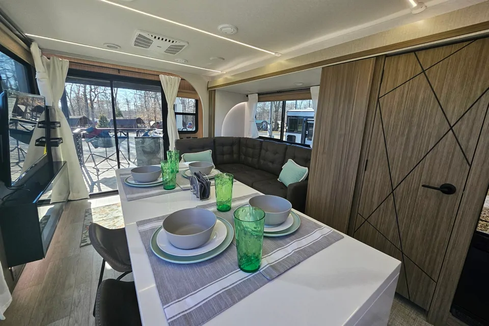 20’ Power Awning with LED Lights – Stay cool and shaded during the day and enjoy ambient lighting at night.