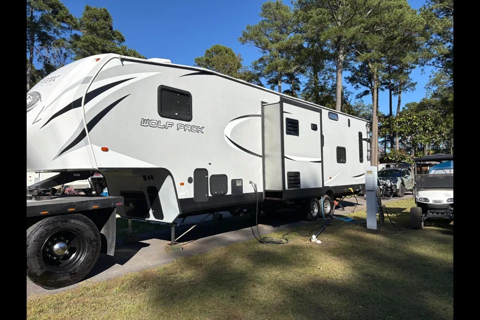 Experience the ultimate getaway in our spacious RV, perfect for families or groups, comfortably sleeping 6. It features 1.5 bathrooms for convenience, a washer/dryer for added comfort, and 2 TVs for entertainment. Enjoy the outdoors with a cozy back patio and utilize the garage for extra storage. Simply reserve your campground, and we’ll handle the rest – delivery and setup included! Make unforgettable memories with ease and comfort in your home away from home.