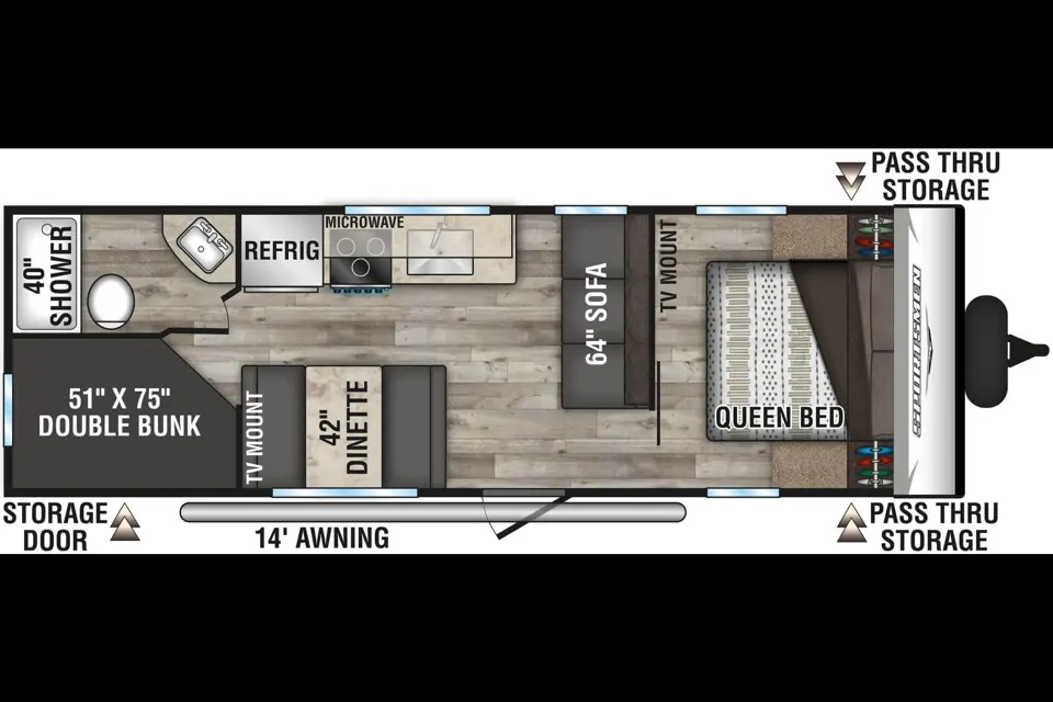 - Double-over-double rear bunk beds