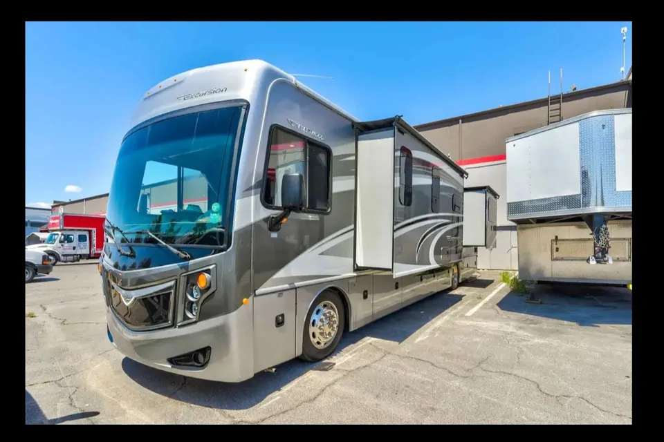 Embark on your next adventure in luxury and comfort with this 2015 Excursion 35E Class A diesel pusher by Fleetwood.