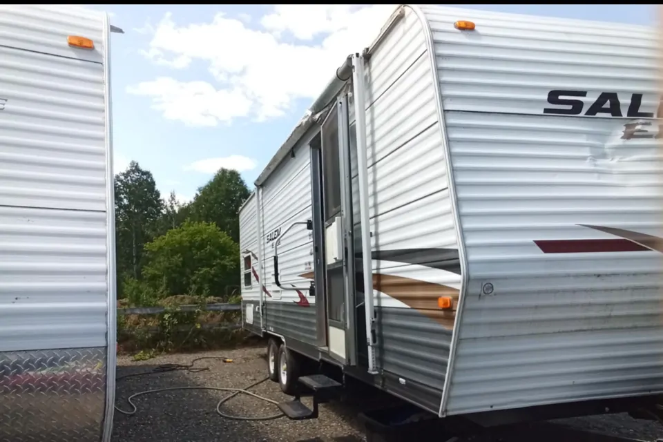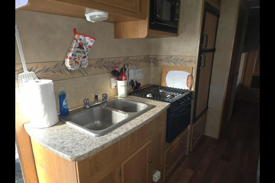 Perfect camper for your family getaway! Queen size bed for the adults, the dinette drops down and 4 single bunks in the bunkhouse, sleeps up to 7 and has a 3 piece bath. Fully stocked with all cookware, dishes, utensils, cutlery. Just bring your own linens, clothes and food.