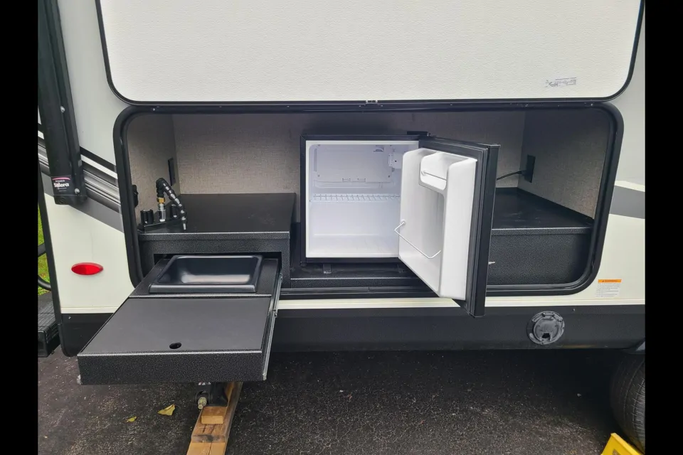 The rear bunkhouse makes this a great camper for families. The lightweight design makes it towable for most half-ton trucks. The Murphy Bed gives you more living space during the day. The outdoor kitchen allows you flexibility when deciding when and how yo prepare your meals.