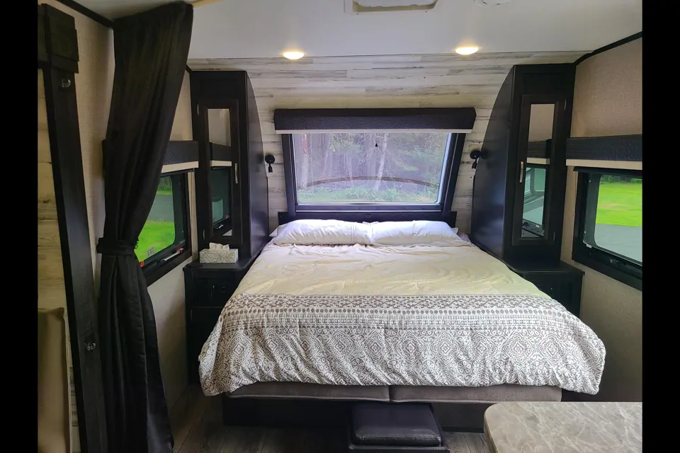 This was our first experience in an RV. We couldn’t have found better hosts than Stephanie and Kevin. Unit preparation was immaculate; delivery timely; setup absolutely perfect(0% tilt); everything in trailer worked flawlessly; and departure quick and smooth. On top of this, Stephanie and Kevin were engaging, friendly and keen to please. We enjoyed them very much and would use their lovely camper anytime. Truly, one of the most pleasurable vacation experiences we have had.