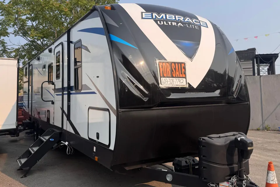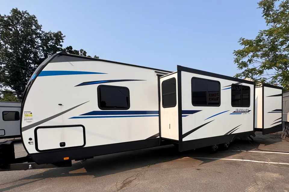 Ready to create unforgettable memories? This stunning 2021 Cruiser Embrace EL310 is your ticket to the perfect getaway! At 36 feet of pure comfort and convenience, this travel trailer is designed with families and friend groups in mind.