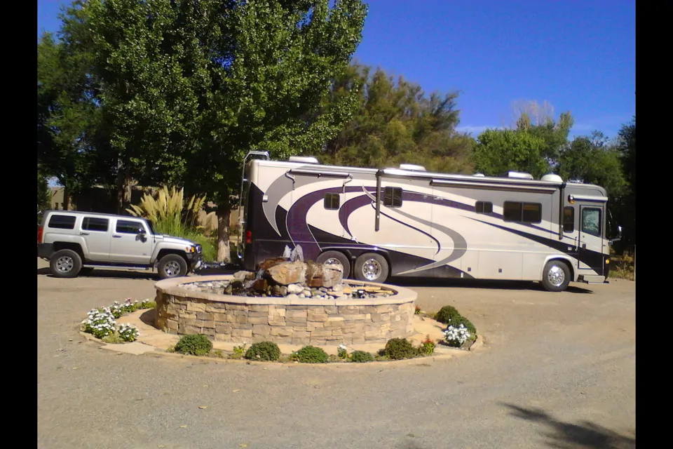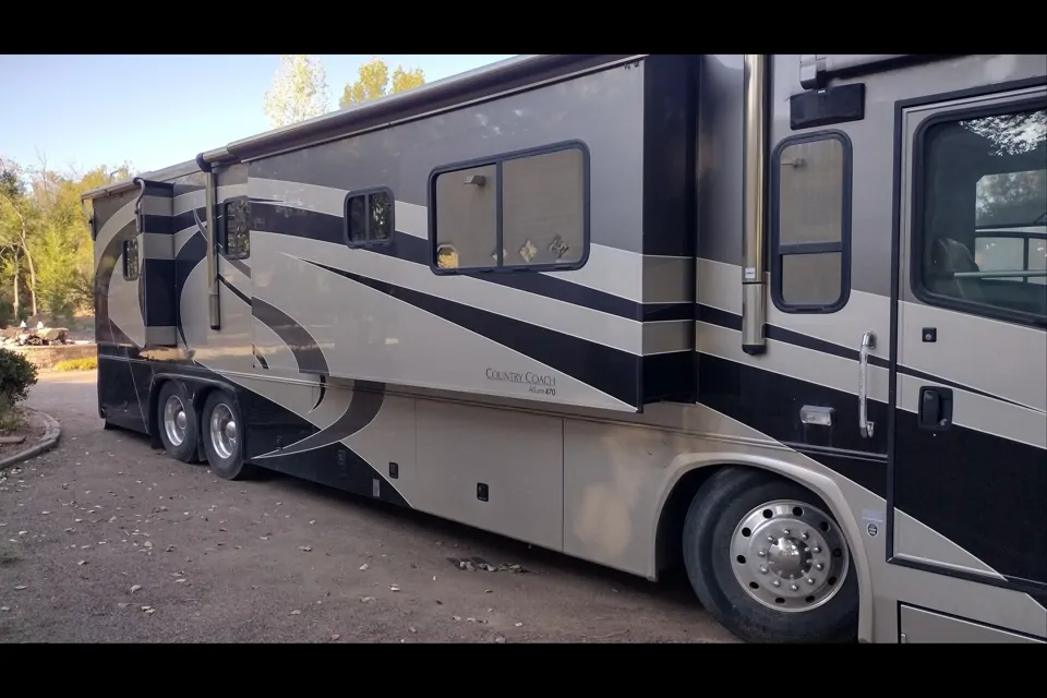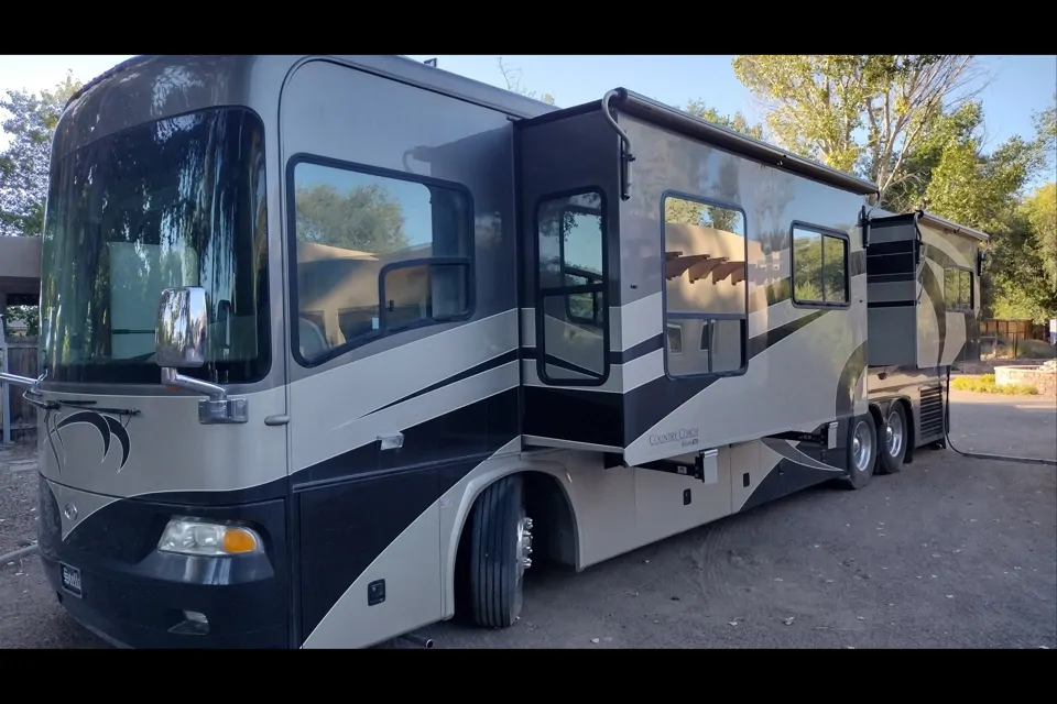 NOTE: The State of New Mexico requires a Class E CDL exempt license endorsement or a CDL Class B license in order to drive this motorhome. If you do not have a CDL license or endorsement, we are willing to travel up to 100 miles from our location for a fee to set it up for you during your stay as long as the location has full hook-ups - water; sewer and 50amp power. Travel like a rock star in this high-end motorhome by Country Coach renown for their top quality finishes and amenities! Luxury abounds in this quad slide tag axle motorhome finished in rich cherry wood and quality appointments. The four slides expand the motorhome into a generously sized living space featuring upgraded LED televisions; Dish satellite and Harmony Home integrated home theatre with updated electronics and surround sound. This richly appointed motor home is immaculate and offers separate his and her sinks, generous storage and an upgraded mattress in the bedroom. The dining booth and couch have been re-upholstered in faux leather resembling the feel of fine lambskin. It comes fully equipped for travel and was recently serviced by Statkus Engines in Albuquerque New Mexico. Book now and get started on your next road adventure!