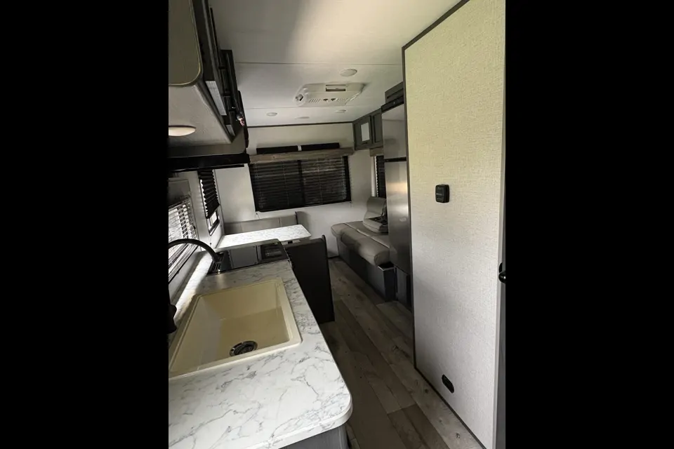 It's best features is it's home away from home. Full amenities, it's cozy and comfortable, relaxing, good for making family memories. Enjoy your time indoors or out with this mini home on wheels. Enjoy camp like with ease!!!!
