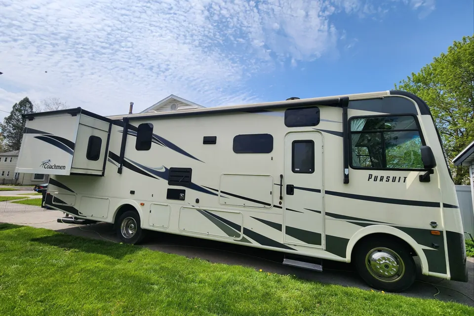 Clean and fully stocked! We wanted to share our RV with others who will enjoy it like we do! King sized bed with plenty of storage. 2 recliner chairs inside for watching TV on the rainy days. Dining table that folds down into a bed. Over the driver bunk to add another sleeping space. Modern and convenient!