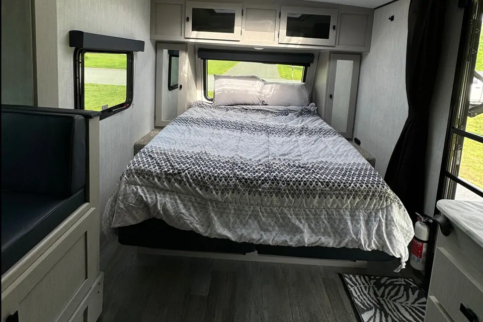 Enjoy the skylight above the bed at night and watch the stars from the comfort of the trailer.