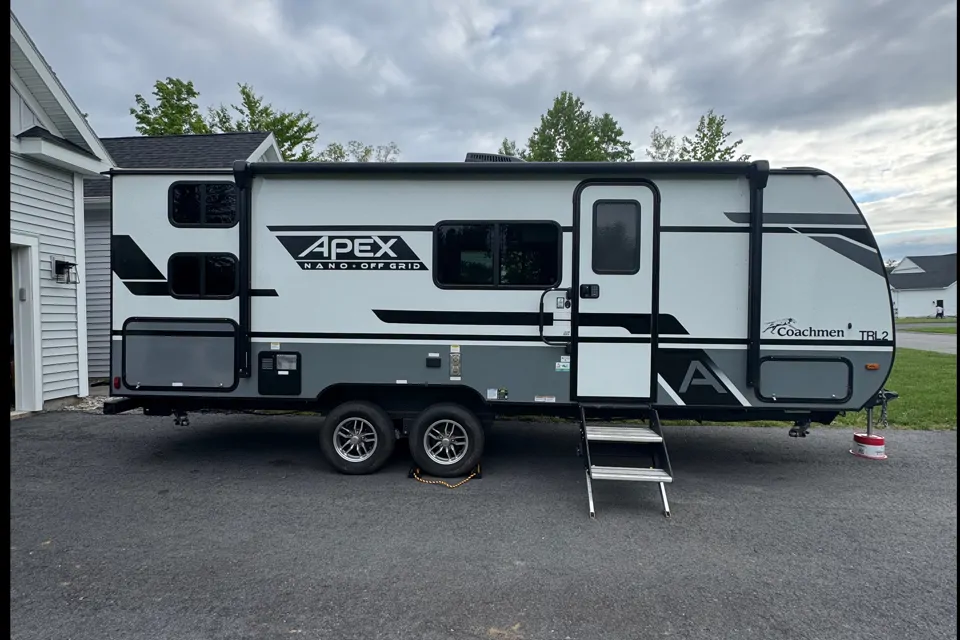 Introducing our newest camper, our 2024 Apex Nano Bunkhouse Travel Trailer, the ultimate family-friendly adventure companion. Designed to sleep up to 7 people comfortably, this travel trailer is equipped with everything you need for a home-away-from-home experience. The well-appointed kitchen comes with basic appliances, pots and pans, silverware, and more, ensuring you can prepare meals with ease.