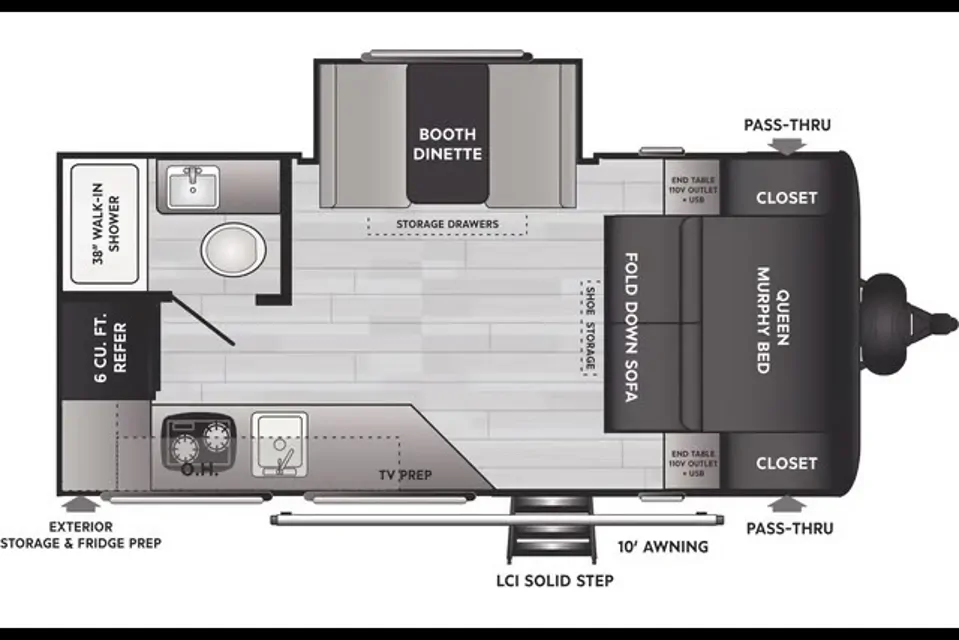 Cozy layout with a roomy dinette, comfortable seating, smart storage, and great lighting throughout.