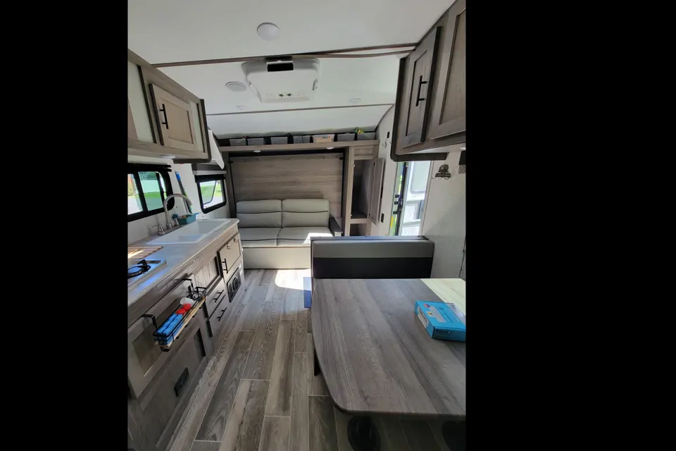 Comfortable for adults and larger children. Large bathroom with comfortable shower. sofa at the front of the trailer is a queen size murphy bed. All bedding (pillows not included) dishes, silverware, cooking utensils, toaster, coffee pot, pots and pans, towels, and cleaning supplies are provided in the camper. We will deliver the camper within a 45 mile radius of Tupper Lake. This includes Little Wolf Beach and The new KOA holiday in Tupper Lake, the KOA in Lake Placid, Fish Creek, Rollins Pond, and Charlies Inn in Lake Clear NY, Cranberry Lake, and Lake Eaton. Camper will be completely set up and ready to use upon your arrival. We will pick up the camper at the end of your stay.