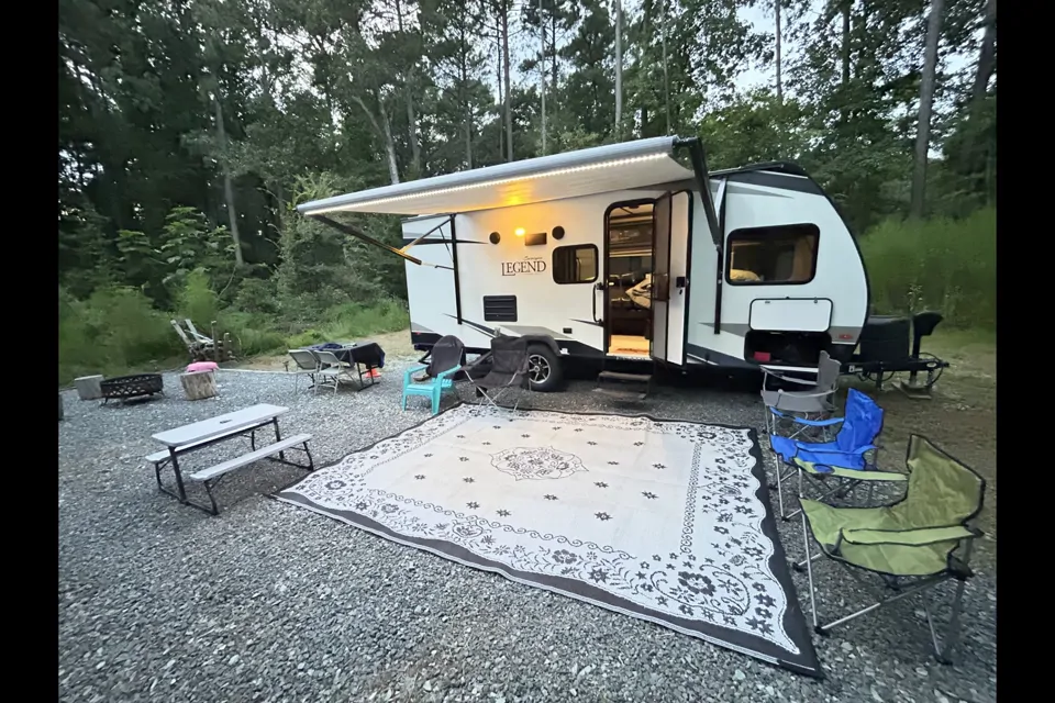 Available for booking is our surveyor travel trailer named "The Legend." With comfortable, ambience and added amenities! Driver side slide out. It comes with a 2-burner stove, a refrigerator, a microwave, a shower and tub, heat and A/C, bunk beds, a Queen-sized bed and dining table that converts into a bed, board games, TV and an automatic awning as well! Cookware and cooking utensils are provided as well as clean linens with every stay. Propane tanks included for use. Included is also a weight distribution hitch for peace of mind when towing. Looking forward to your booking! *Our camper is located in an almost perfect location in Durham city; just 5 minutes from Duke Regional Hospital and 15 Minutes from Duke University.