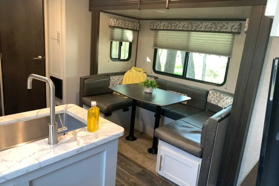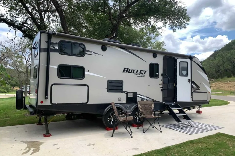 The Keystone Bullet 243BHS is your ticket to adventure on wheels! sleek, modern design that's both stylish and functional, perfect for families or groups looking to explore the great outdoors. Inside, you'll find a spacious living area with cozy seating, a fully-equipped kitchen ready for your culinary delights, and a comfortable sleeping arrangement that ensures everyone gets a good night's rest. The bunkhouse adds an extra layer of fun for the kids or guests, while the exterior kitchen lets you cook under the stars. With the Keystone Bullet 243BHS, every journey is a blend of comfort, convenience, and unforgettable memories waiting to happen.