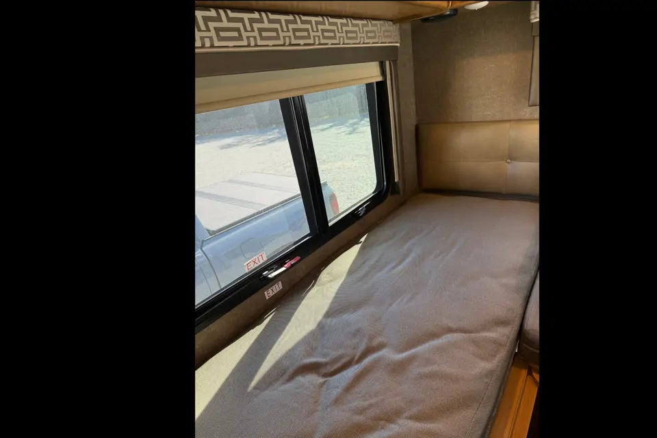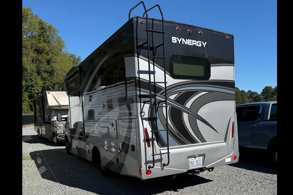 The RV is as clean as it came off the show room floor. I didn’t take a picture of awning, but it’s nice. Propane generater, Refrigerator and stove. There is a grill with propane tank and chairs in storage under coach. Never used stove because we use a nuwave and pots a pans work on it. The venoms chairs are great fo sleeping or watching TV. The bed in the rear are singles, but can be made into a king. Sheets and pillow cases are inculuded. Paper plates forks and spoons. Knives are included.