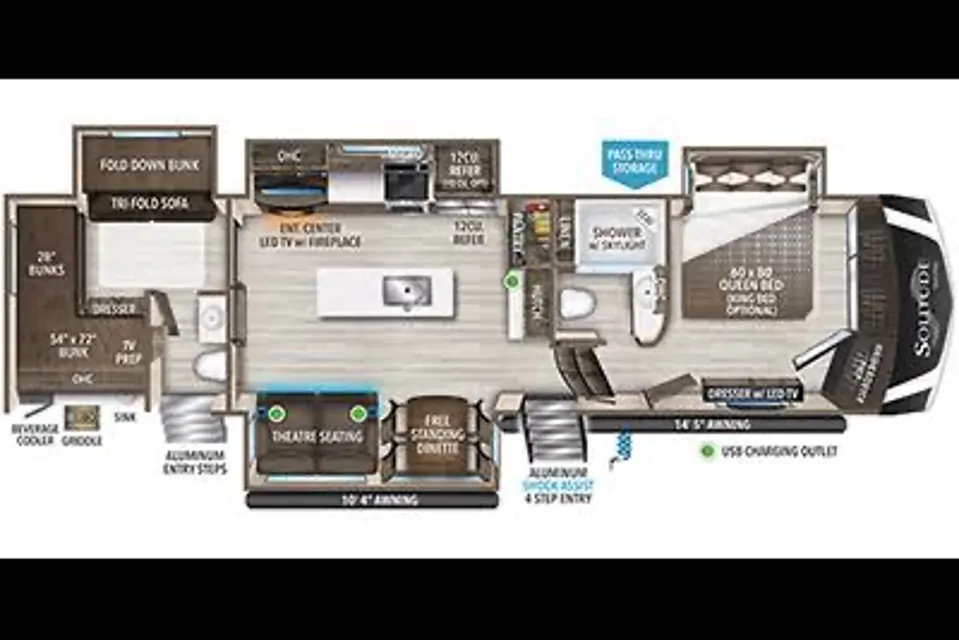 A nice big functional outdoor kitchen/bar and two large awnings are my favorite outdoor features.