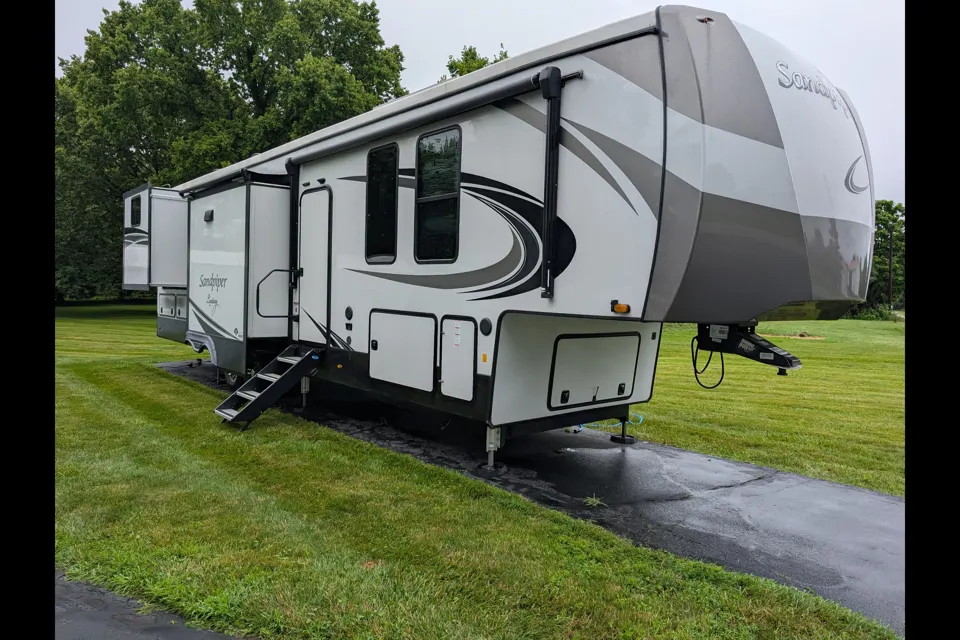 Spacious 5th wheel that will accommodate up to 9 campers! Great for families as it has sleeping areas divided and a large residential fridge. Comes complete with linens and all the little things you can think of for a get away. Outdoor accessories included are folding chairs, popup tent/ shelter.