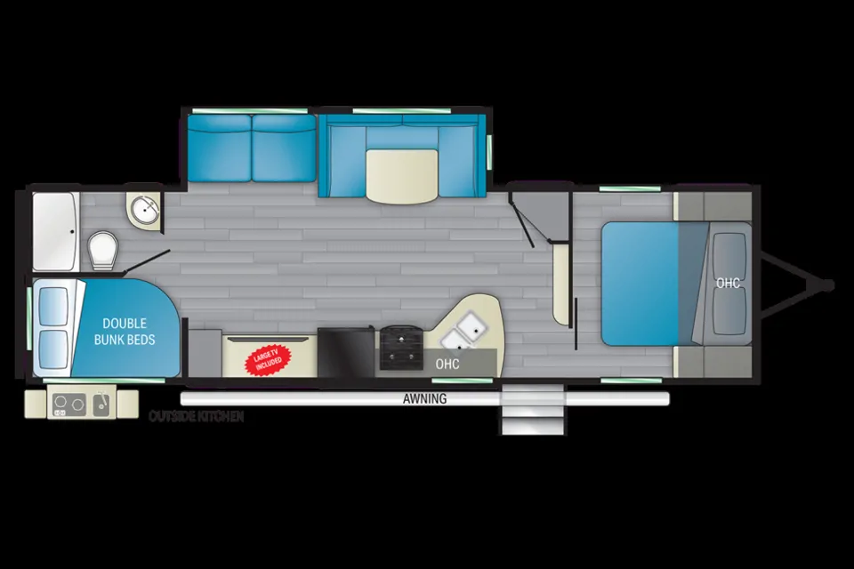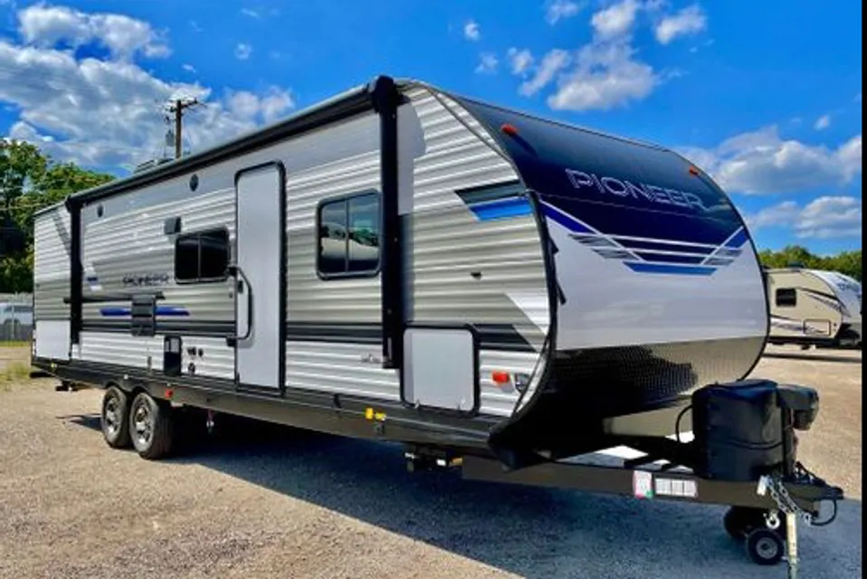 Room for the whole family!!!! This new trailer will give you peace of mind knowing everything will work, so you can enjoy your vacation. Extra spacious layout with tons of storage space makes your trip easy. Bonus outdoor kitchen makes life simple, and with an outdoor refrigerator your beverages are easy to get to.