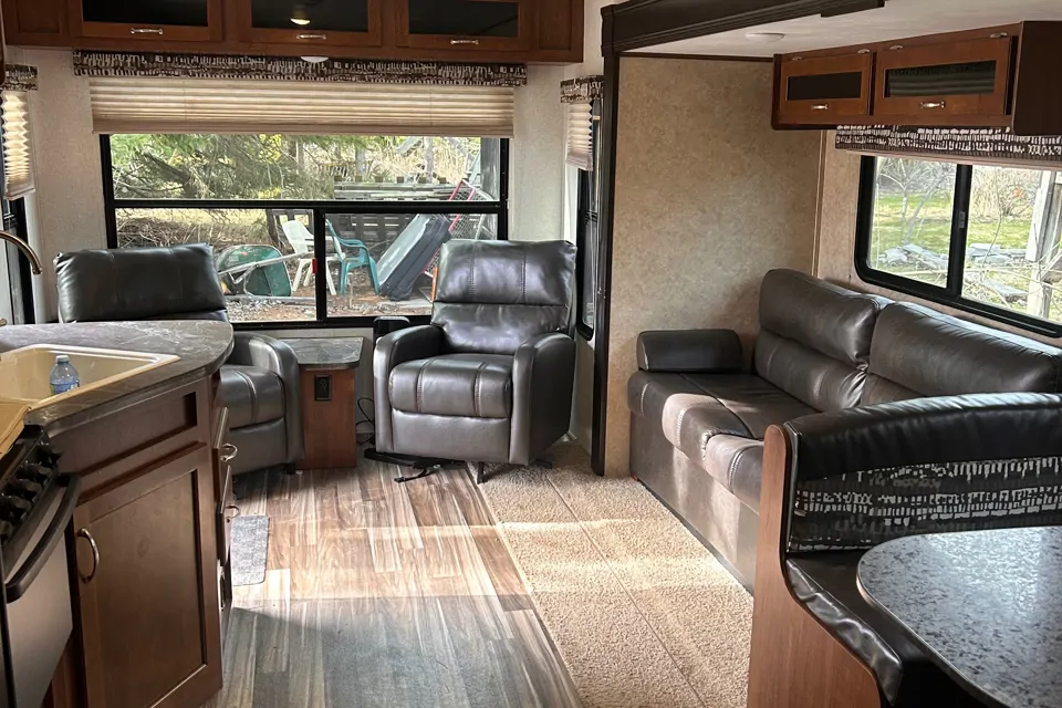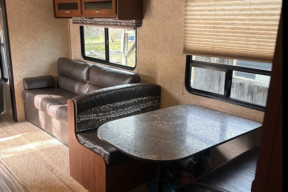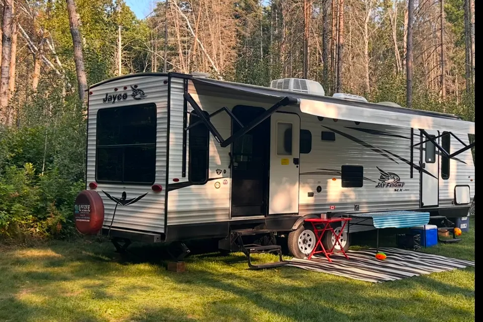 This trailer has been nothing but great to us every time we use it. It has everything you could want or need. It tows very nice and is very easy and quick to set up. The fridge is cold and a little bigger than normal. Outdoor shower is a nice change for when you’re secluded. I provide table chairs barbeque and some sporting equipment to make sure everyone has a good time. Very bright and spacious inside. The beds only take a minute to set up and are comfortable. Master bedroom is a nice size and having a door makes it quiet from the rest of the trailer when it’s bedtime. There is lots of cupboard space for snacks and anything else. The shower inside is spacious and feels like home when you’re using it.