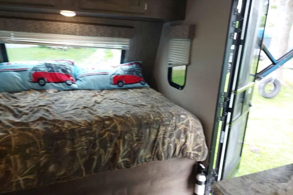 For entertainment, the Bluetooth stereo system with speakers inside and out lets you enjoy your favorite tunes whether you’re lounging indoors or hanging out by the campfire. Plus, with exterior lighting, you can keep the good times rolling even after the sun sets.