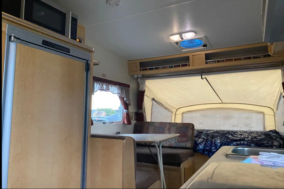 There is a double bed on one end and a queen on the other. There is an also a dining table that can be converted to more sleeping space if needed - about the size of a single bed. Plenty of storage above the beds and in various compartments throughout the trailer. There is a good size fridge with a freezer, sink, tabletop stove and microwave. There is also a bathroom. Please don’t flush normal toilet paper or paper towel down the toilet. Please empty grey/black water if used.
