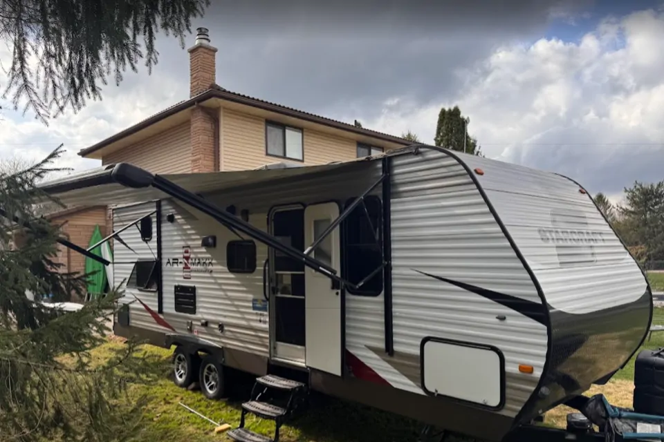 Family ready travel trailer with large slide out (Kitchen and couch), double bunks and separate queen room. Perfect for weekend getaways or longer trips.