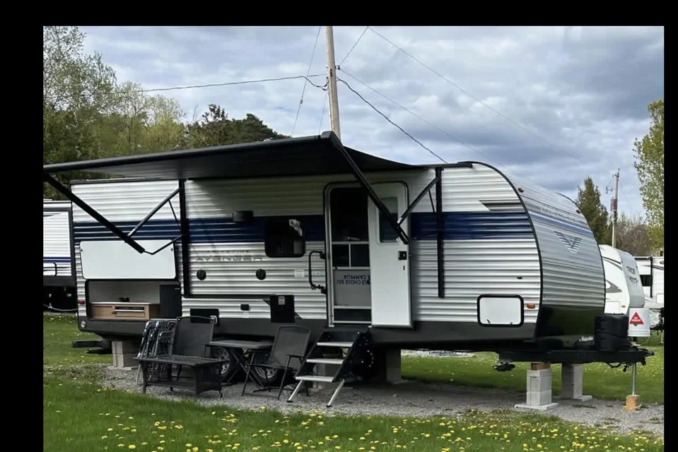 Excellent brand new feel travel trailer, great for a weekend away or for a week holidays with the family . This trailer will sleep 6 people including a queen size bed, kitchen table that folds down and a set of bunk beds for the little ones