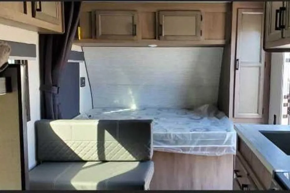 Great modern travel trailer with everything you need. Under the power awning with blue tooth speakers and LED lights is a great place to relax. Inside offers a queen bed and two bunk beds. Also the dining table becomes another single bed. The kitchen has it all with a microwave, gas burner cooktop, hot and cold running water, a full height fridge/freezer, coffee maker and all the utensils, flatware and drinkware that you need. The private bathroom has a toilet, tub and shower. Also this trailer has a gas furnace and air conditioning! Book your vacation and enjoy everything this trailer has to offer.