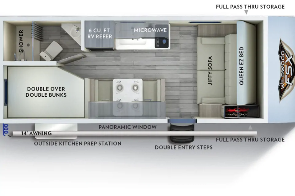 Great travel trailer especially for families, has double bunkhouse for the kids and queen size bed for the adults.