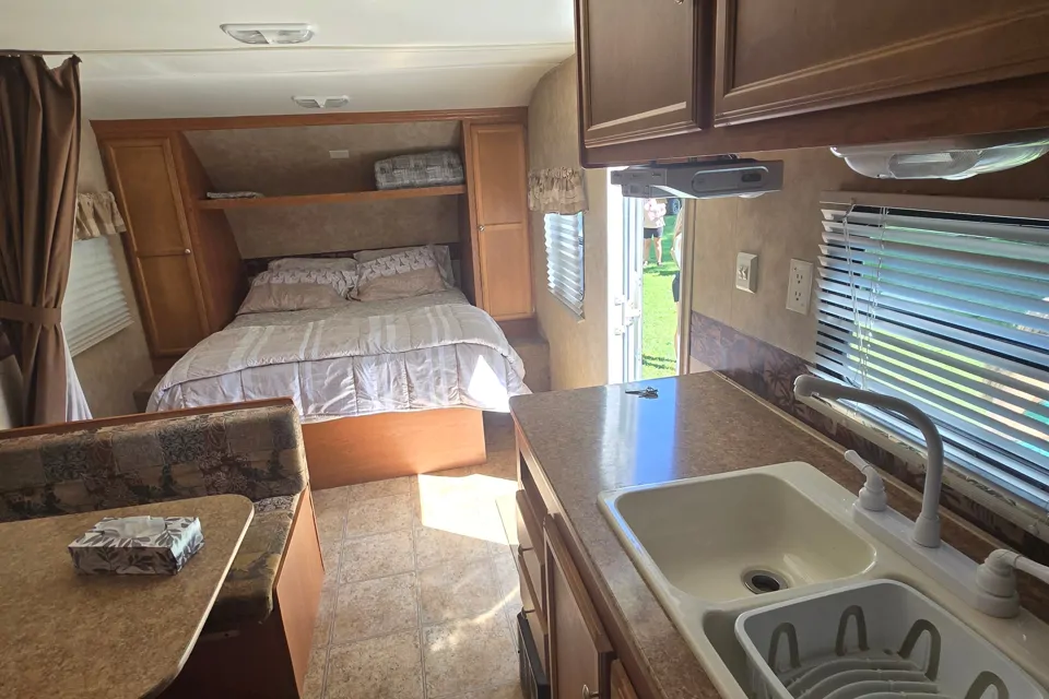Welcome to your spacious, home away from home. It offers the comforts of home, slightly minimalized. The interior colors are warm shades of brown. The awning is a great size when you want to get out of the sun or rain. There is plenty of room for pet crates/beds. Just be ready to relax and rejuvenate!