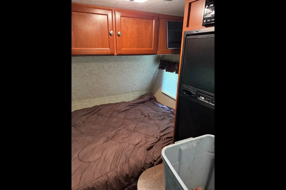 Small and cozy trailer with all your needs. Fridge microwave cook top burners .easy to set . Awning is an electric with one slide out for more room A/C for those hot nights provided your hooked up to power.