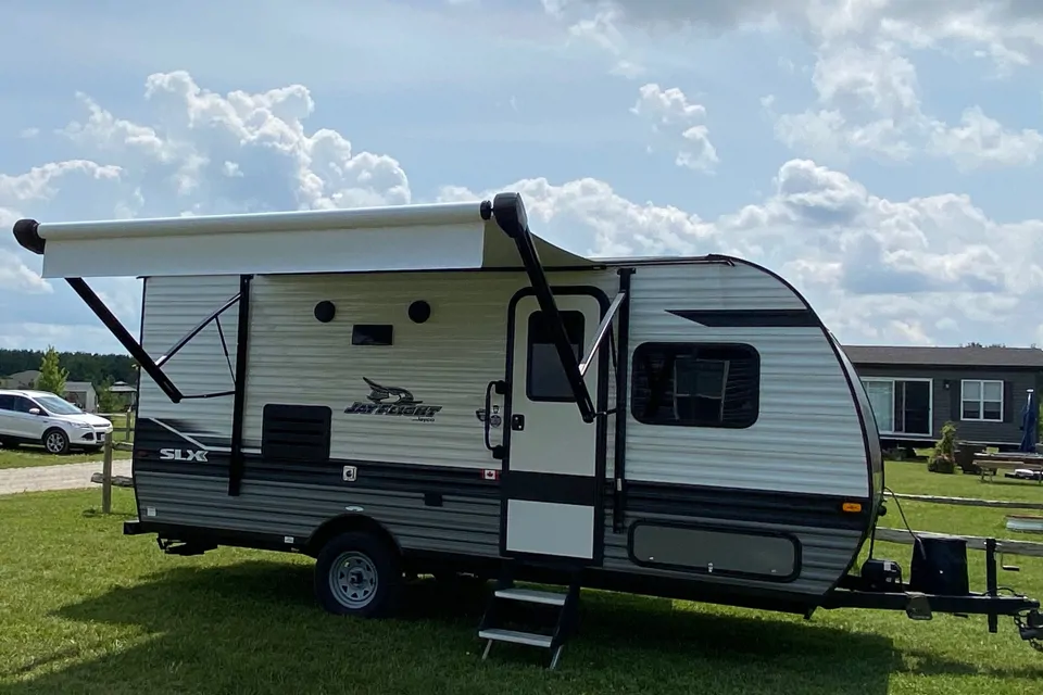 When you’re outside you can enjoy the coverage of an awning while listening to music through the outdoor speakers.