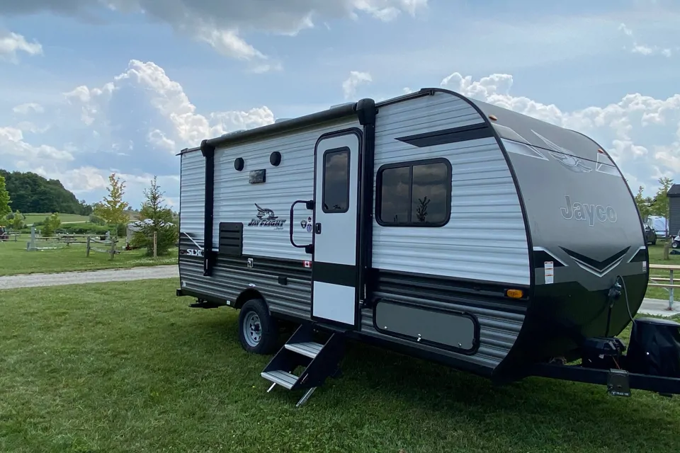 This trailer says “take me away”, it can go wherever you want to go! Its compact size and light weight make it the perfect getaway trailer for couples or families. With a queen size bed, twin bunks and a couch that opens to a bed, there is lots of space when you need to be inside.