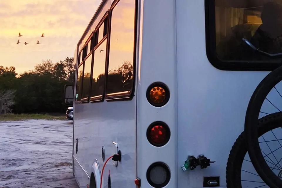 Our 20′ converted shuttle bus brings the same warm, woodsy charm and off-grid spirit you know and love, with the freedom to roam wherever the road takes you. Park, unwind, and make new memories in the great outdoors.