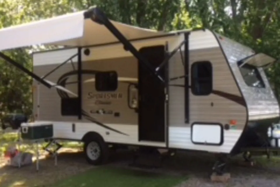 New in 2018 - lightweight - 2950 lbs dry weight (before adding all your belongings) so can be pulled by most SUV’s that have a tow rating of 3500 lbs or more! This trailer is easy to manouver, and a family friendly trailer with bunks. Nicely equipped with kitchen necessities. Very roomy when dinette is open. Fully air conditioned. Can sleep 6 if needed! A wonderful 4 inch gel memory foam addition has been made to the double bed for your comfort. Bunks have additional memory foam for comfort and waterproof cloth covers. For longer rentals, delivery, set-up and retrieval could be negotiated for an additional fee if the camping location is within a maximum of 50 kms. Please let us know in your initial email if this is a requirement for you. Small or medium sized dogs welcome. No cats & no coffeemaker! We supply a wireless brake controller which plugs in to your vehicle power port, so no alterations to your vehicle are needed. A 7 pin trailer hitch connection is required.