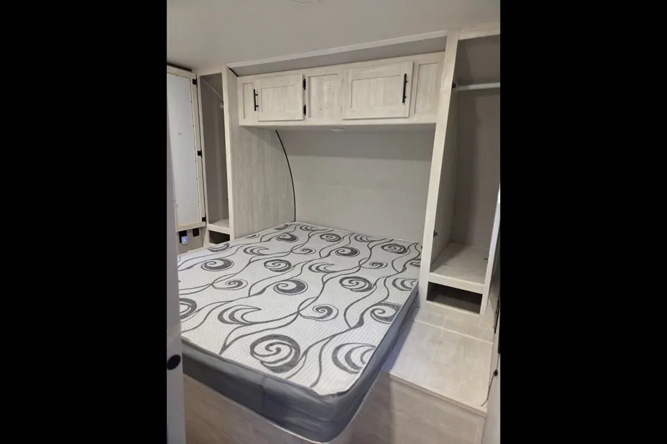 This beautiful 2023 Grand River Comfortline 309BHU is a 30.5-foot, half-ton towable bunkhouse travel trailer with a dry weight of 5,344 lbs and a GVWR of 7,000 lbs. It features a slide-out, private queen size master bedroom, rear bunkhouse with 4 bunks, an outdoor kitchen & outdoor shower, and a sleek entertainment center with theatre seating, making it suitable for family camping. Unit comes fully sanitized and detailed inside and out.