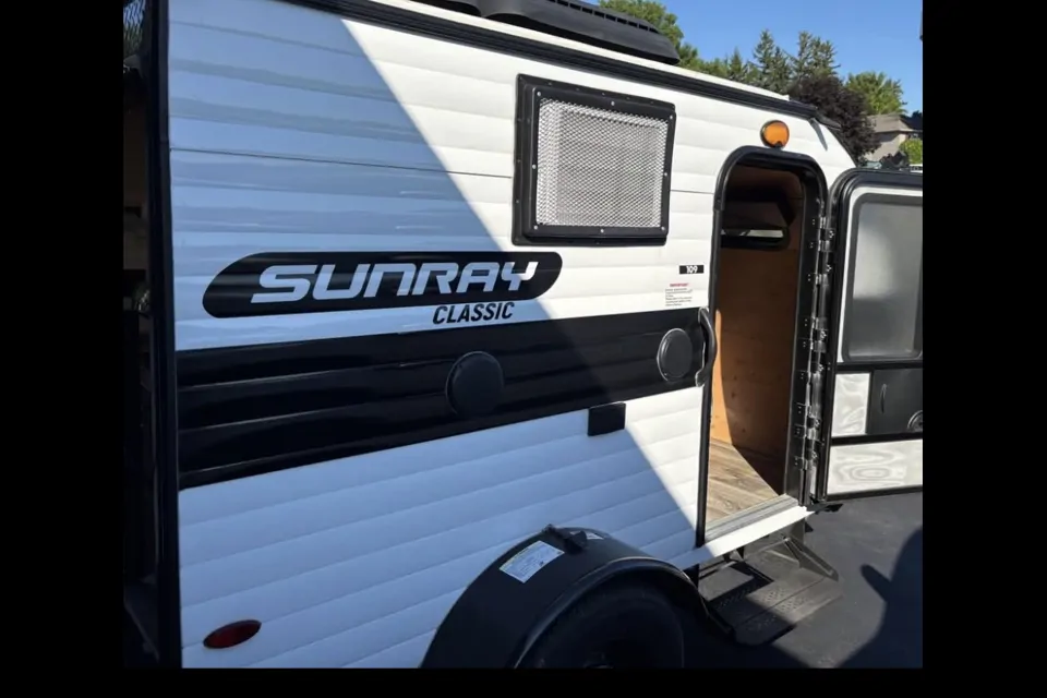 This Sunray travel trailer with its 12' length and 1,320-LB dry weight, is simple to navigate. You have most of the basic essentials without needing to tow all of the extra weight. There is an outdoor kitchen that comes with a two-burner stove top, a refrigerator, microwave and a sink. You will have an outside shower that you can use for various purposes, like rinsing off your equipment, filling a bucket with water, or hosing down your muddy puppy, and there are USB ports and a Winegard HDTV antenna to keep you modern.