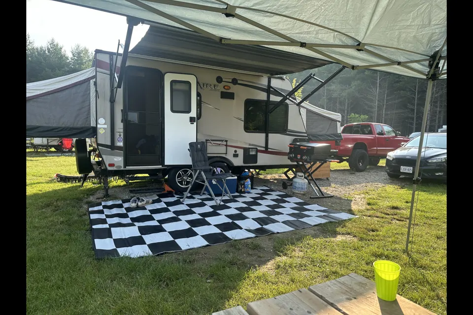 New awning full kitchen fridge freezer oven stove top and microwave small tv for bed time for the kids