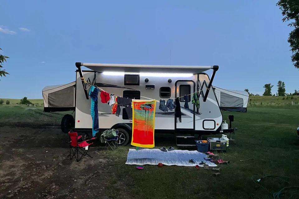 Come with everything you need bedding, utensils, pots and pans. Lite-weight, easy towing with lots of space for the whole family. Some of the features of the trailer, outdoor shower, trailer-mounted BBQ with quick-connect propane line.