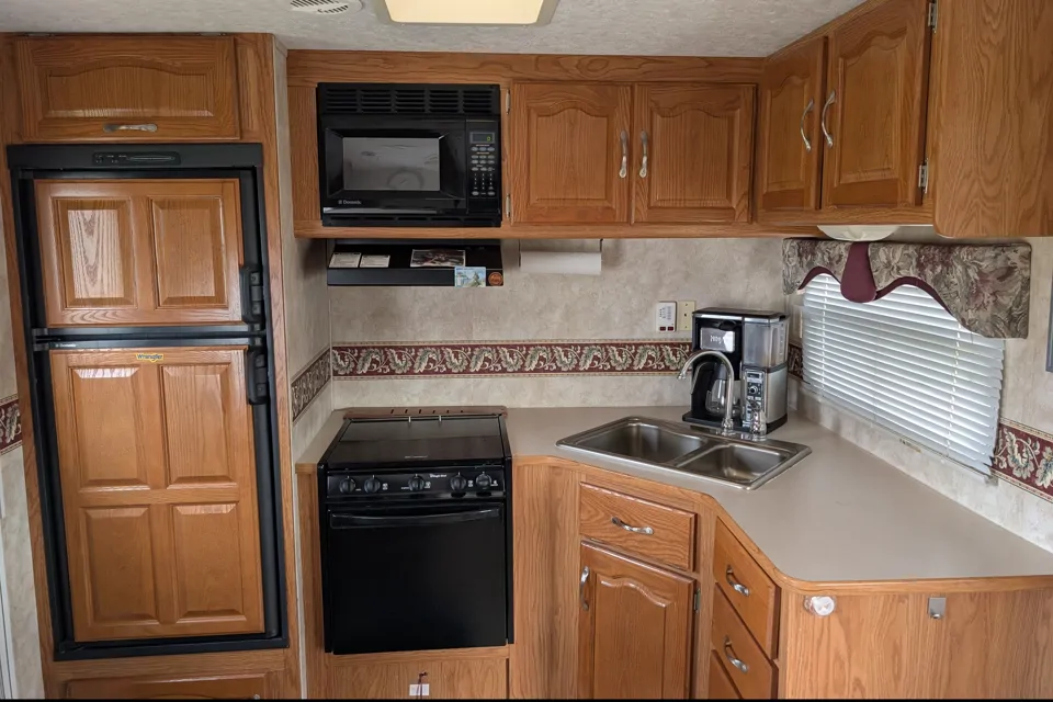 Inside, you'll find a comfy queen bed, a convertible dinette, and cozy pull-out sofa—ideal for couples, families, or a group of friends. The camper features a fully-equipped kitchenette with a fridge, stove, and microwave, along with a clean, private bathroom with a shower. Air conditioning and heating ensure you're comfortable no matter the weather.