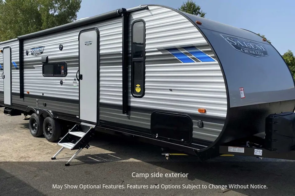 This trailer is brand new! I have a sewage tote already, everything you need for a great holiday will be available. 40" television is available upon request, which has HDMI inputs. This unit has an outdoor camp kitchen, equipped with a propane skillet and small refrigerator as well! The hot water heater is dual, either electric or propane. A folding table, camp stove, and mini propane grill are available.