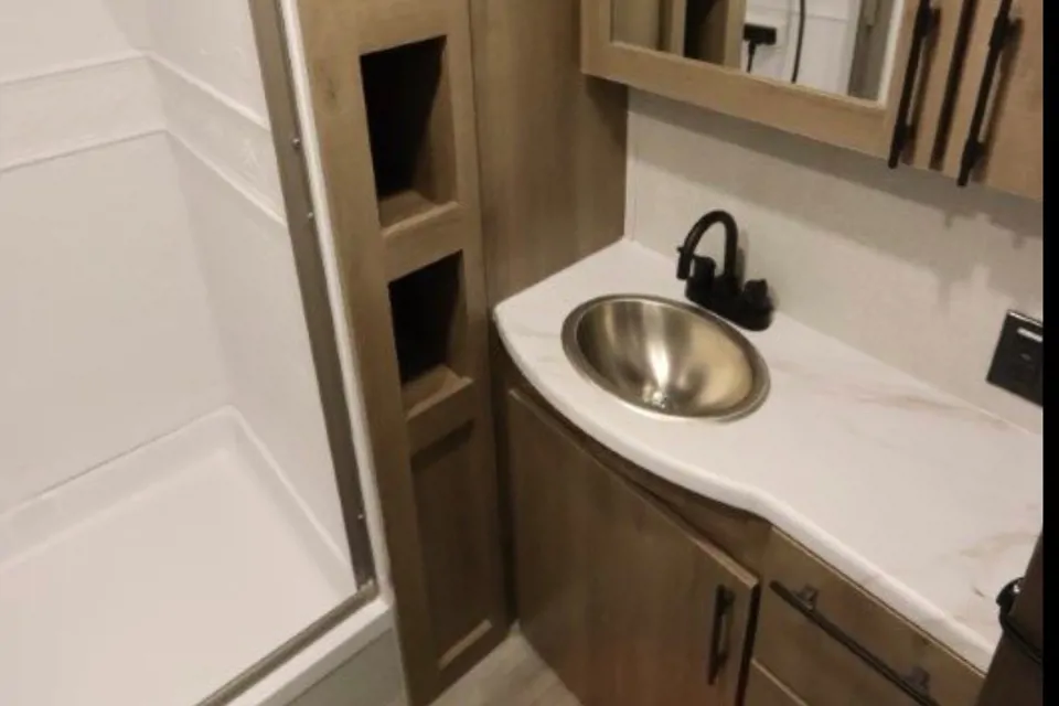 Brand new trailer with a-lot of accommodations outdoor kitchen with a outdoor griddle and fridge. Coffee machine on board comes with lawn chairs utensils plates and many more all you need to bring is your bedding and towels . Sleeps 6 comfortably with a queen size bed and pull out sofa and diner that turns into a bed . Trailer is brand new and equipped with solar . Come and rent this trailer for your amazing family get away .