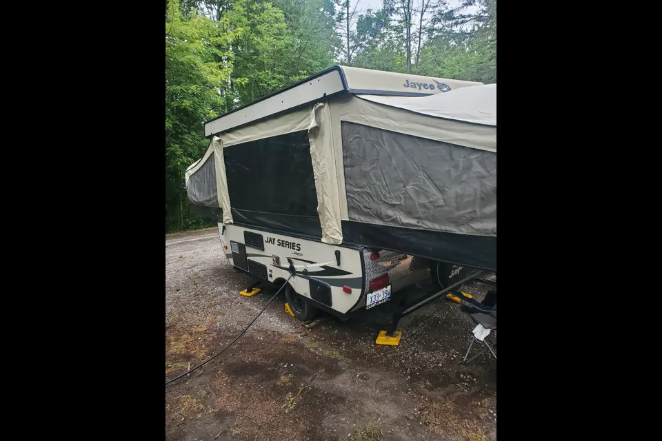 Family and pet friendly. Perfect for comfortable outdoor adventures. Sleeps 7. Comes with two burner camp stove for use with propane cylinders. Outdoor grill can be hooked up to propane tank. Fridge runs and electricity or propane. Please no cooking inside and no smoking inside.