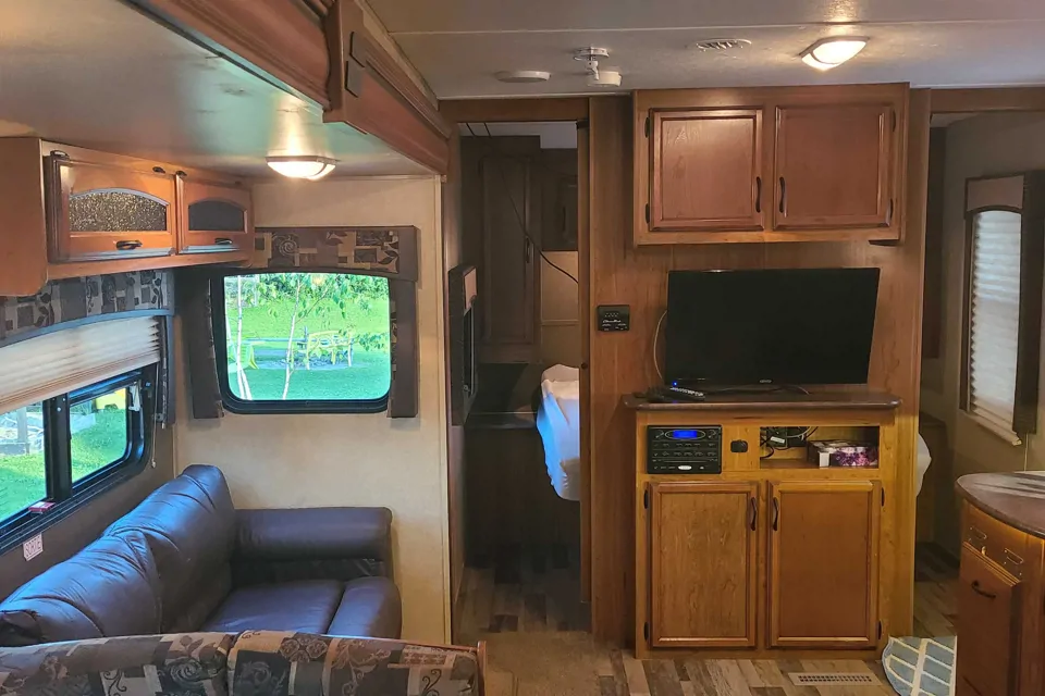- Gabriel B.juil. 2023Livré par l’hôteThis experience was fantastic! The trailer was there on time and all setup for us. All we had to do was turn on the AC and hot water pump and they gave us detailed easy to follow instructions. The kitchen had everything we needed. The beds were comfortable and a great size! Would rent again!