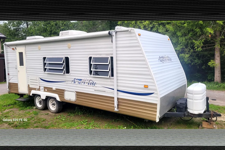 Older but in great shape. Everything works. Totally renovated. Air conditioner works great. New tires. Upgraded mattress. Extra propane line for a bbq. Awning..hot water. Indoor and outdoor shower.
