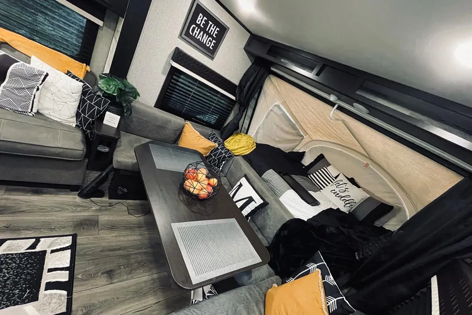 Modern farmhouse glamping hybrid. Looks can be deceiving when this camper is packed up; when unpacked it is so spacious inside. It has all the amenities that one would want or need and then some. Lots of storage space for not only food and kitchen items but clothes, games, linens, towels and more! I have made a point to have everything my home has…my camper does too! It is comfortable, inviting and everything is accessible. There is so much to this camper, we have made many memories in it and want you and your family/friends to do so as well.