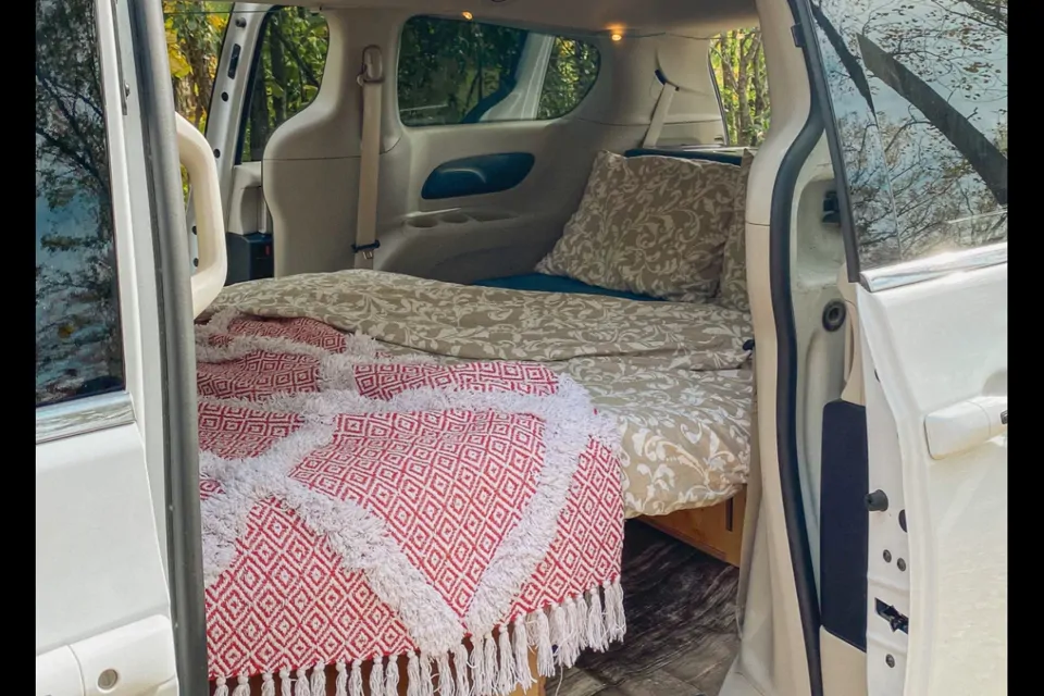 Explore the great outdoors with your loved ones in our cozy Chrysler Town & Country minivan camper, affectionately known as "KK"! 🚗