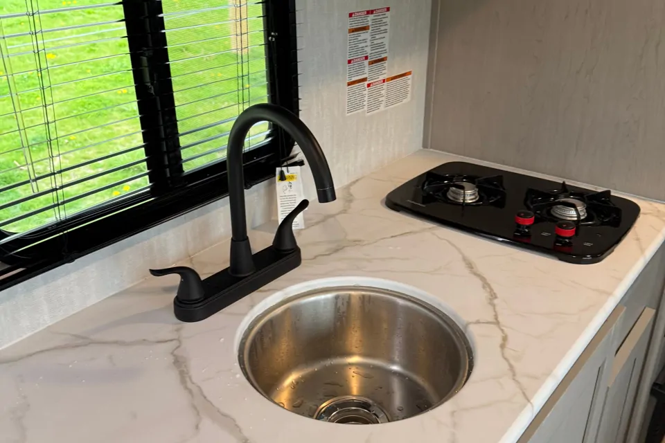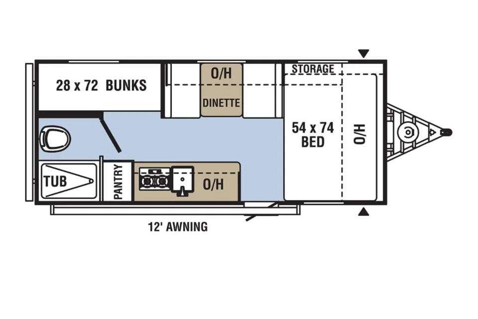 Adventure, is a fancy RV which is very luxurious and cozy! The RV has a queen bed bunkhouse, 4-inch-thick mats, modern kitchen pantry and large front window! Your family and friends can comfortably curl up in bed after a fun day at camp.