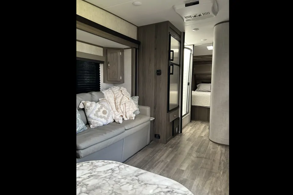 Step into your home away from home! This bright, spacious trailer offers everything you need for the perfect getaway—whether it’s a weekend escape or a weeklong adventure. Designed with couples in mind but roomy enough for guests, it’s fully stocked with dishes, cookware, linens, blankets, extra bedding, towels, and camp chairs. Just pack your clothes and food, and you’re ready to relax and unwind in comfort. We take pride in providing a welcoming space and kindly ask that you treat the trailer with the same care and respect as your own home.