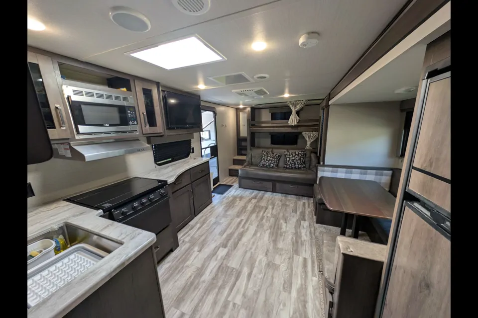 Une note de l’hôte: Delivery available within 100 km round‑trip for $120. For trips beyond 100 km, an additional $2 per km applies. ✅ Delivery includes: Full setup of the trailer at your campsite Leveling, slide‑out, and awning setup Hookup of water, power, and sewer (if available) A walkthrough to ensure you know how everything works Takedown and removal at the end of your trip ⚡ Requirements: Campsite must accommodate a 33‑foot trailer A level site with adequate clearance for setup Access available for both delivery and pickup times 🕒 Availability: Weekday deliveries available after 5:00 PM Weekend deliveries available flexible by arrangement Please confirm site booking details at least 7 days prior to rental Delivery times are typically available after 4:00 PM on weekdays and are flexible on weekends. Please confirm times in advance. Campsite must accommodate a 33′ trailer. Full hookups (water, power, sewer) recommended.