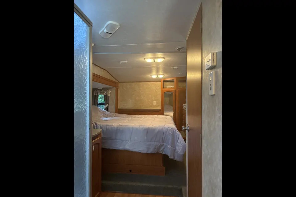 Well kept and looked after 5th wheel ready to use. Two separate sleeping areas consisting of a queen bed up front and a pull out sofa in the rear living space. Everything a family or group of 4 would need to enjoy time away camping.